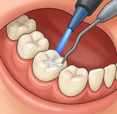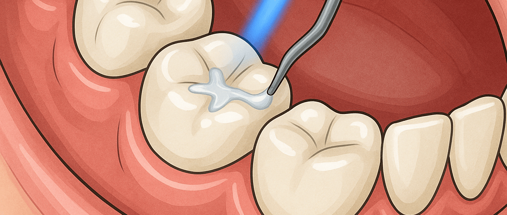 Le scellement est un acte rapide, non invasif et indolore, souvent réalisé en une seule séance par dent.